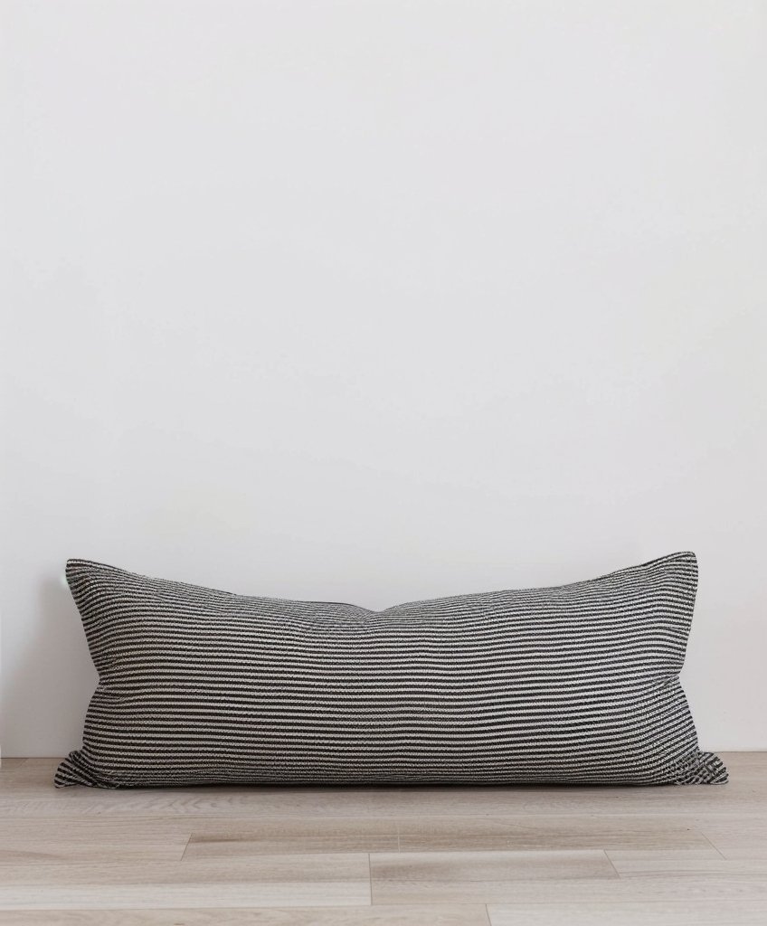 Uniwersalny kształt poduszki lędźwiowej można umieścić na ławce, sofie lub położyć na łóżku. Każdy wzór jest tkany w Polsce z najwyższej jakości grubego lnu.
